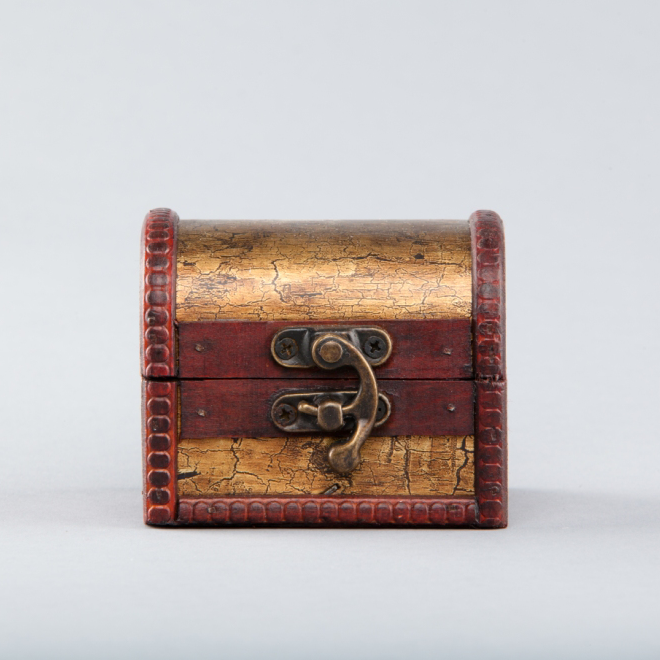 Caseta din lemn, lacuit, vintage. Dimensiuni: 8,5x6x7 cm