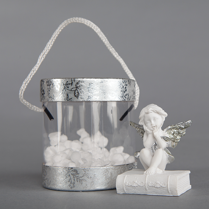 Decor Craciun in cutie argintie – inger ganditor cu aripi 02